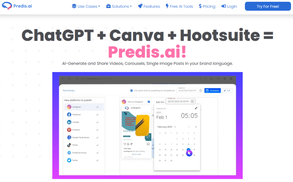 Predis.ai is an excellent tool for creating high-quality content that can help you generate more leads and reach a larger audience. With its ability to quickly generate unique graphics that match your brand identity and recommend trending hashtags, you can create posts in no time. Although there may be some issues with image outputs, Predis.ai remains one of the best content generators available, especially for those who don’t require the highest quality images. With its features like competitor tracking, engagement prediction, and hashtag suggestions, Predis.ai can help you plan your content ahead and create successful posts that will help you reach your target audience. Overall, Predis.ai is a must-try tool for anyone looking to streamline their social media content creation process and improve their social media presence.