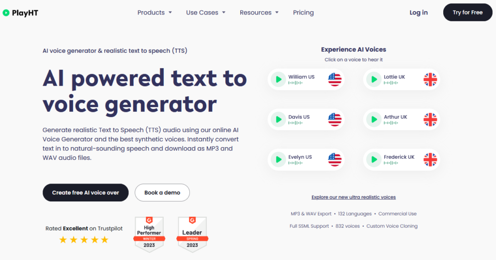 This tool supports multiple languages, including English, Spanish, French, Italian, Russian, Mandarin, Portuguese, Polish, and Indonesian, thereby simplifying language learning. PlayHT was initially launched as a Chrome extension for Medium articles in 2016, but its wide acceptance led to its evolution into a tool for generating realistic audio content for various applications.